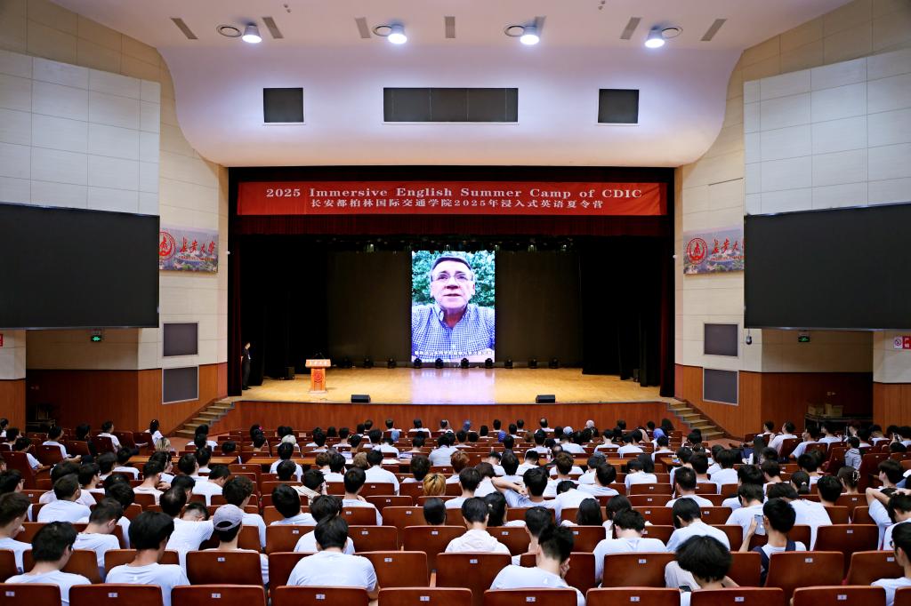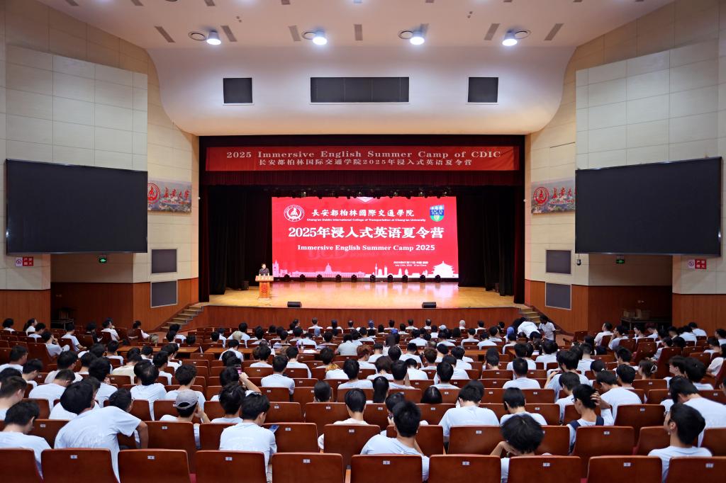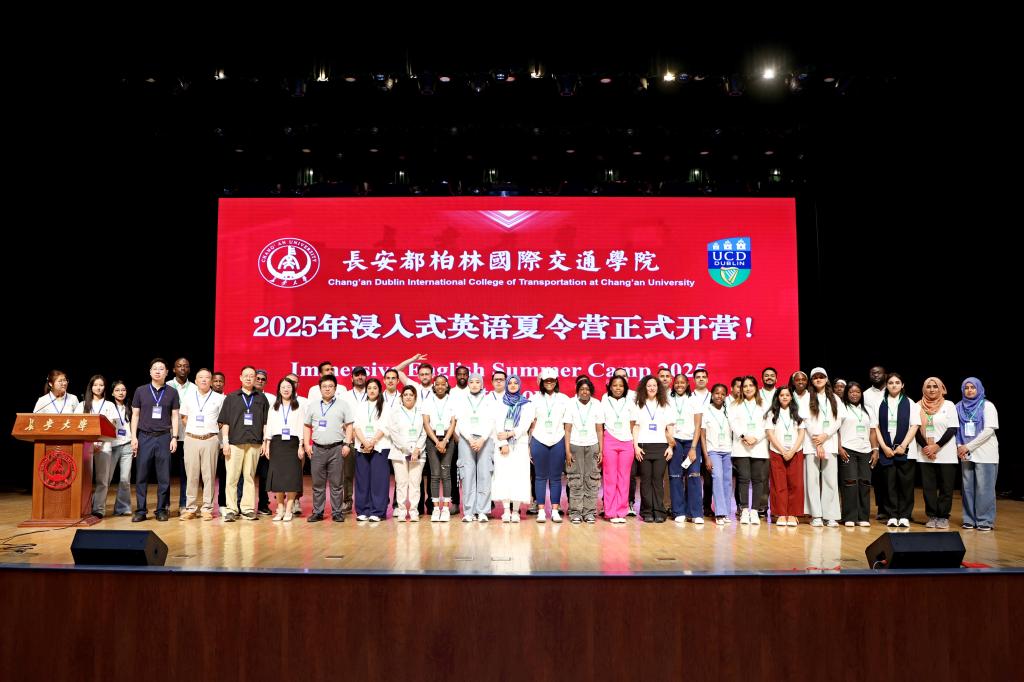 7月11日上午,长安都柏林国际交通学院2025年浸入式英语夏令营开幕式在长安大学渭水校区长安文化艺术中心大礼堂举行。学院领导班子、特聘顾问杨光辉、夏令营外籍教师、国际志愿者以及全体教职工参加开幕式。开幕式由学院副院长李程主持。