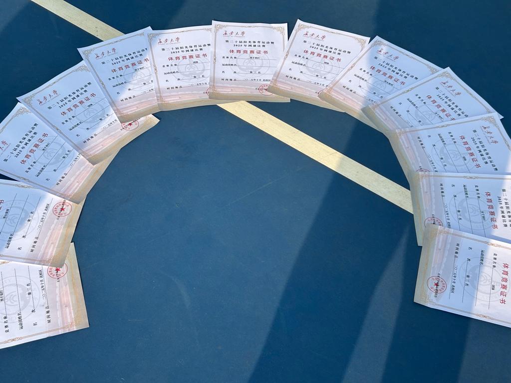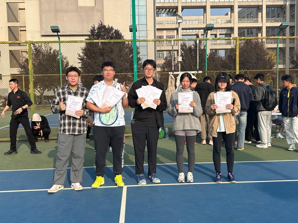 在网球比赛中,学院代表队凭借扎实的基本功与出色的团队配合,荣获团体赛季军。赛场上,选手们沉着应对、稳定发挥。男单、女单选手奋勇拼搏,男双组合战术执行到位,在淘汰赛阶段顶住压力,锁定胜局。个人赛方面,黄昊辉与高苡越获混双季军,黄昊辉与汤斯羽获男双季军,彭婧恬与高苡越获女双季军,充分展现了我院学子全面的体育素养。