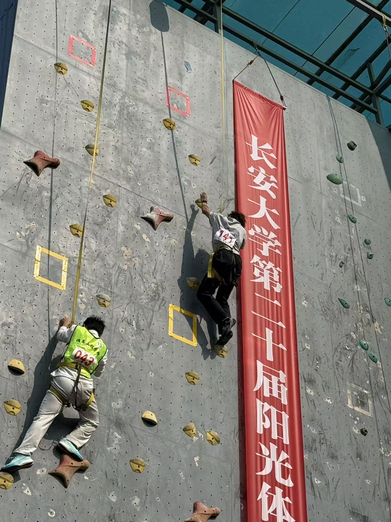 在新生攀岩挑战赛中,我院学子赵焕青凭借出色的体能和技术,一举夺得速度赛第二名与难度赛第一名,助力学院荣获团体总分第四名。