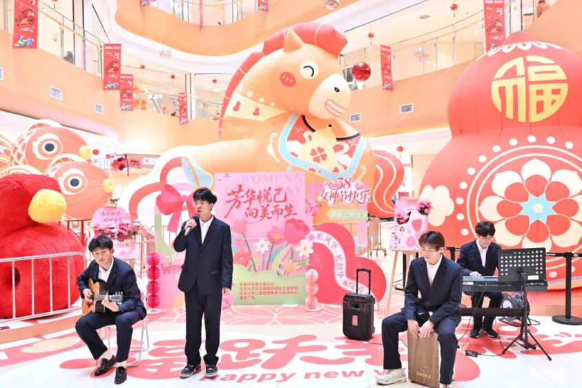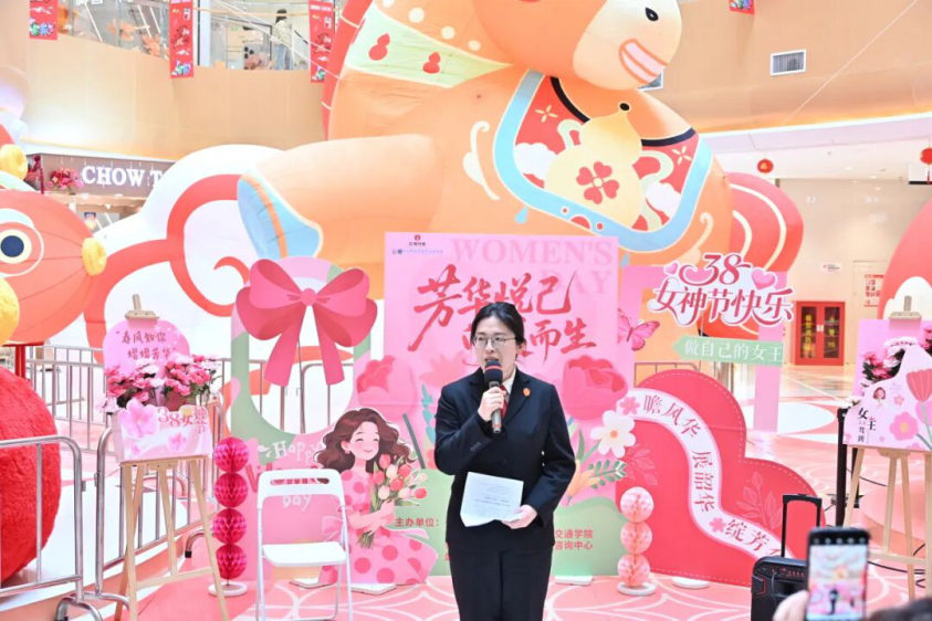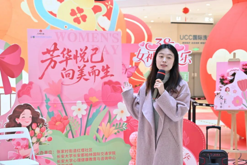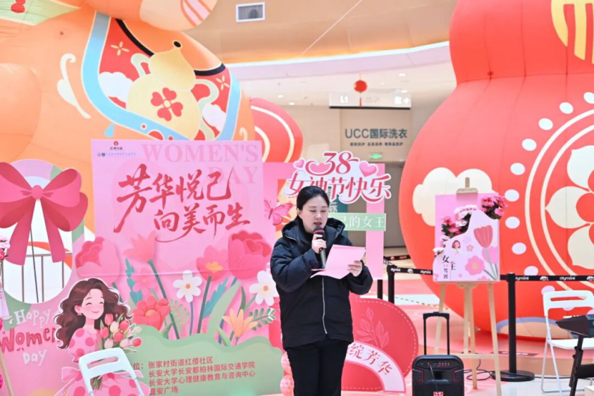 为庆祝“三八”国际妇女节,丰富女性精神文化生活,3月6日,长安都柏林国际交通学院联合长安大学心理健康教育与咨询中心、张家村街道红缨社区、碑林区法院等单位,在盛安广场共同举办“芳华悦己・向美而生” 妇女节主题活动。这场集趣味、创意与赋能于一体的特别活动,吸引了近百名社区居民热情参与。