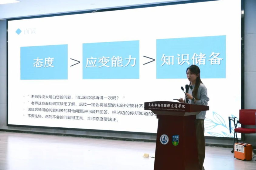 本次活动聚焦考研复试核心需求,特邀2025届成功考研的毕业生任鼎、张旭阳、王利婕、李昊天担任分享嘉宾,内容覆盖道路桥梁与渡河工程、车辆工程、交通运输三个专业,针对性解决不同专业学子的复试备考困惑。分享过程中,任鼎、张旭阳围绕专业知识笔试复习方法与面试应答技巧展开,强调备考需深耕核心课程体系、夯实专业基础,同时密切关注学科前沿动态;王利婕结合自身经验,分享了面试环节中英语口语测试、专业综合素质考核的备考要点,建议同学们加强口语练习,通过多轮模拟面试积累临场应变经验;李昊天从院校选择、导师联络、心态调整等角度进行剖析,鼓励与会同学清晰认知自身优势,自信从容应对挑战。