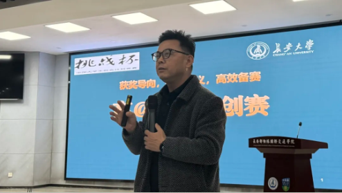 12月3日,由共青团长安大学委员会主办,长安都柏林国际交通学院承办的长安大学“挑战杯”系列竞赛专题培训报告会(第十四期)在鸿远教学楼1404报告厅举行。本次专题培训报告会邀请到知名创新创业导师董小泰担任主讲,校团委学生创新创业实践中心主任金振广及百余名师生参加活动。