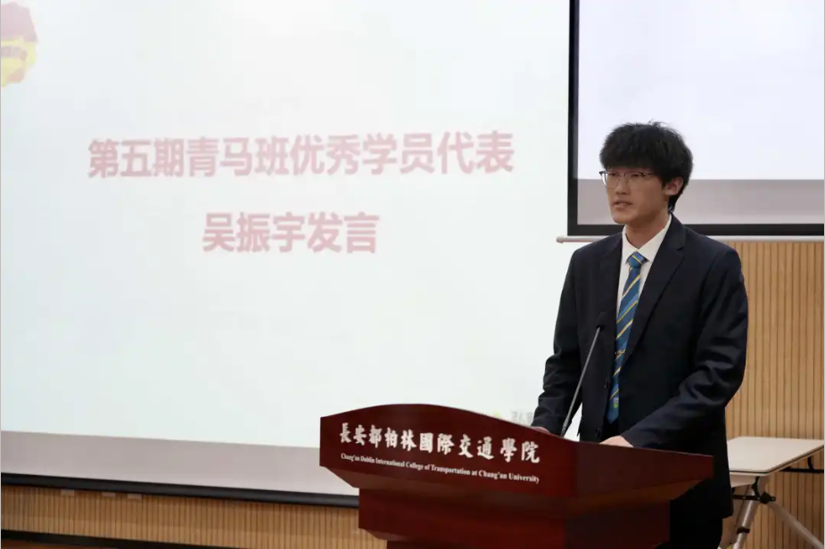 学院团委书记郝裕宣读了《关于表彰长安都柏林国际交通学院第五期青马班优秀学员的决定》,张艳萍为第五期青马班优秀学员颁发证书。