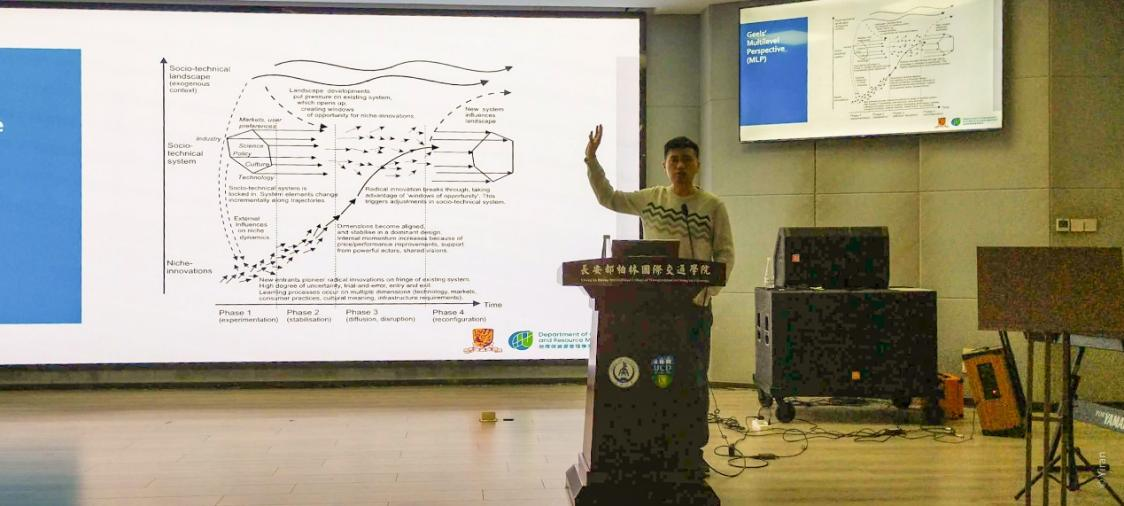 接着,钟璟霖结合国内案例展开了分析。 他以无锡的能源转型为例,说明地方政府如何在环境与经济双重压力下推动光伏创新, 扮演着制度维持者与创新推动者的双重角色。他又以深圳的垃圾管理体系转型为例,介绍了当地如何自2015年起建设集焚烧与资源化于一体的“生态园”,有效应对填埋危机。他强调,正如能源与垃圾管理系统一样,交通系统的绿色转型也绝非简单的技术替代,而是一个涉及技术、制度、用户与实践的复杂社会技术重构过程。