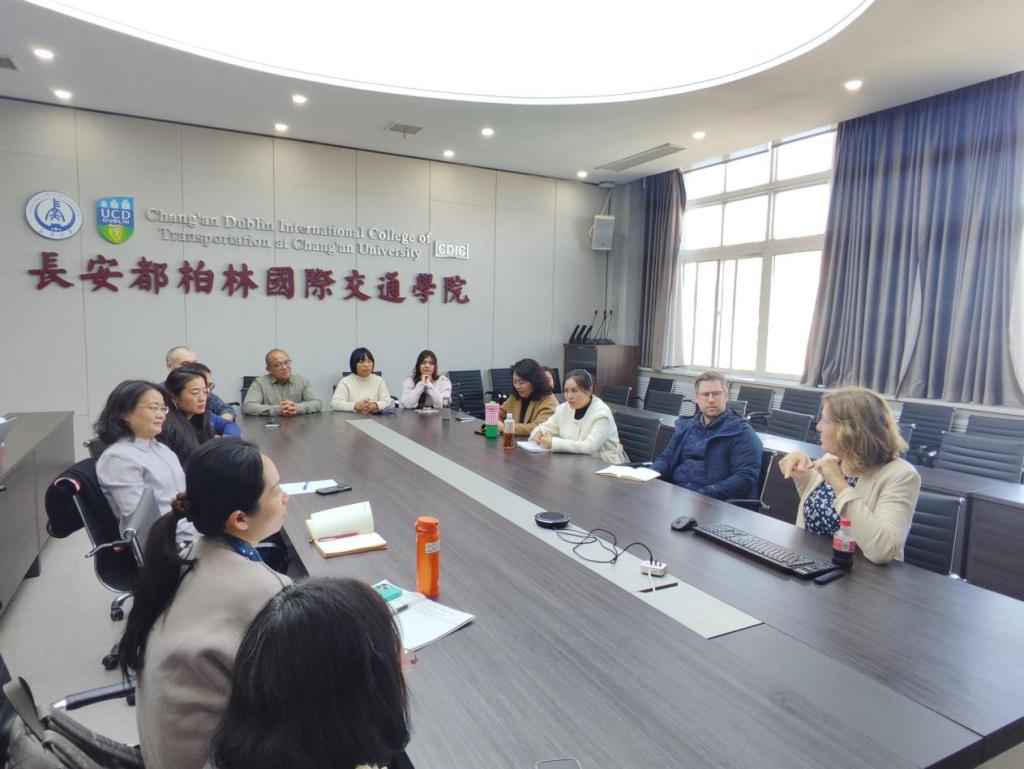 2025 年 11 月 17 日及 18 日中午,长安都柏林国际交通学院于鸿远四楼会议室召开学院英语教师教学座谈会。会议邀请爱尔兰都柏林大学英语与全球语言中心主任Anna Nunan 博士与学院中外英语教师针对学术英语教学开展交流讨论,学院英语课程负责人 Alex Ruchman 博士主持会议,中外英语教师围绕学术英语课程建设、学生学习特点及AI时代教学应对策略等重点议题展开深入研讨。